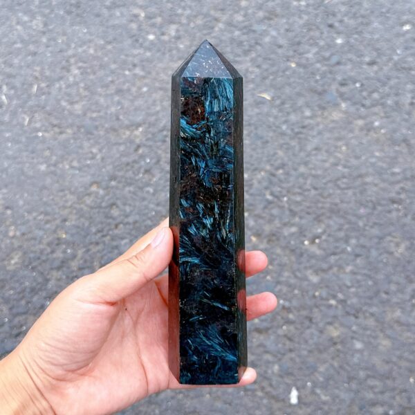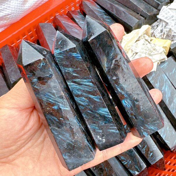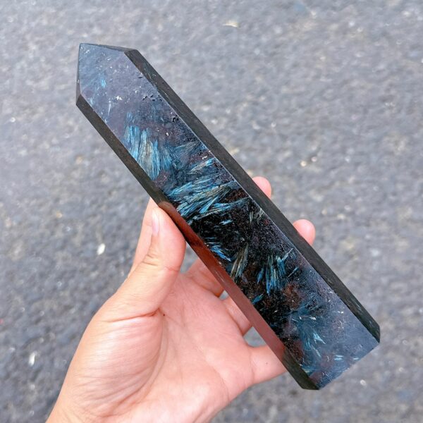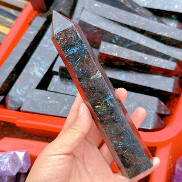 - Artisanal craftsmanship: Meticulously shaped and polished to showcase astrophyllite’s natural brilliance.