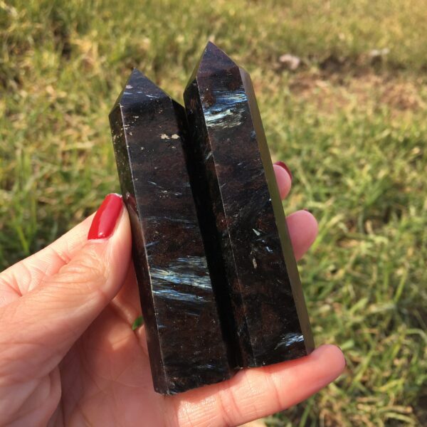 Bring a unique glow to your space with our Astrophyllite Crystal Tower. Known for its star-like inclusions, the tower’s polished obelisk shape and radiant, coppery patterns ignite curiosity and inspire exploration in any setting.